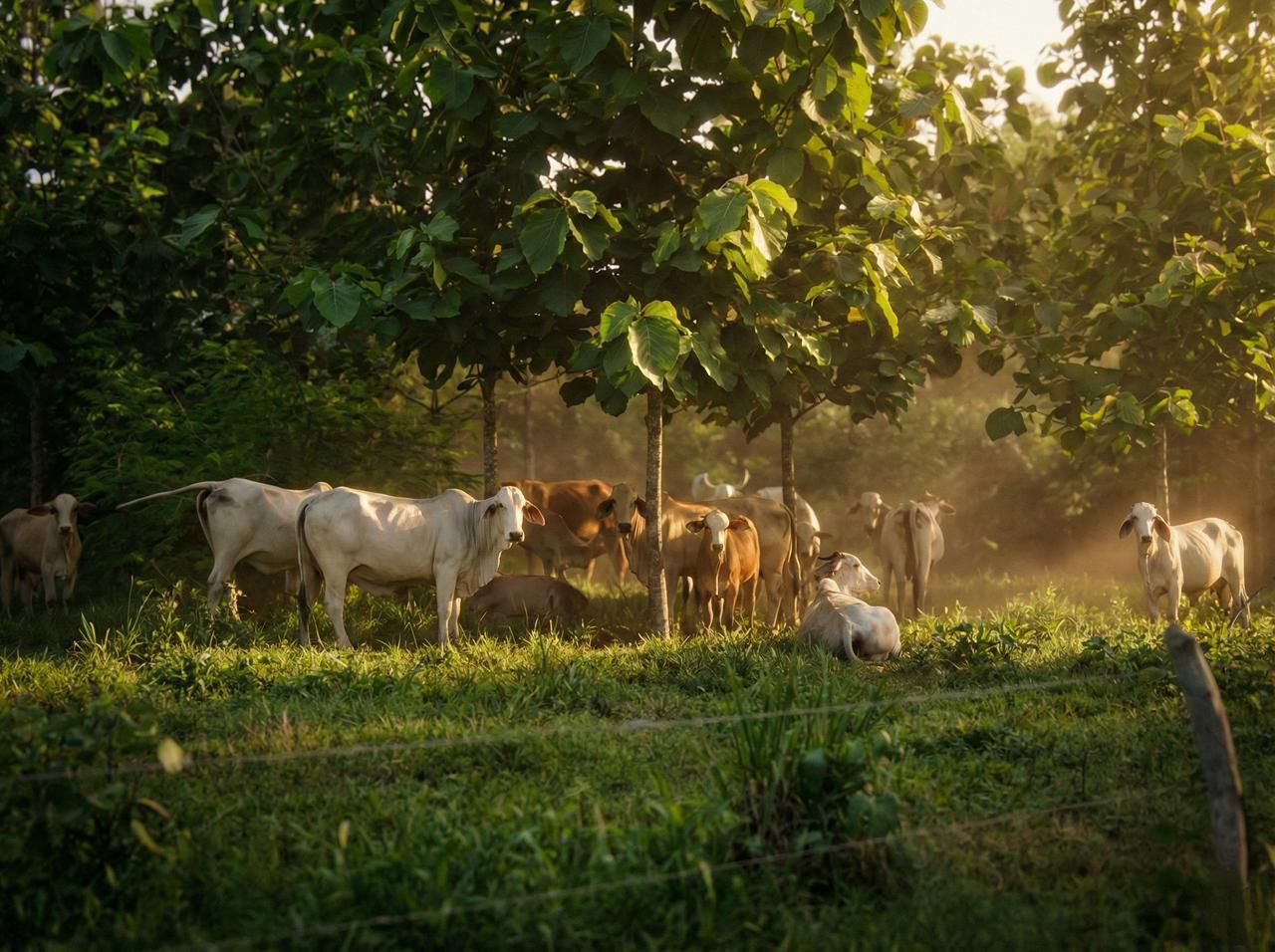 En términos sencillos, esto significa sembrar árboles dentro de los potreros. Ya no es el pasto solo contra el sol. Se integran especies arbóreas nativas (como el matarratón, el totumo o el algarrobillo) con pastos mejorados y el ganado.